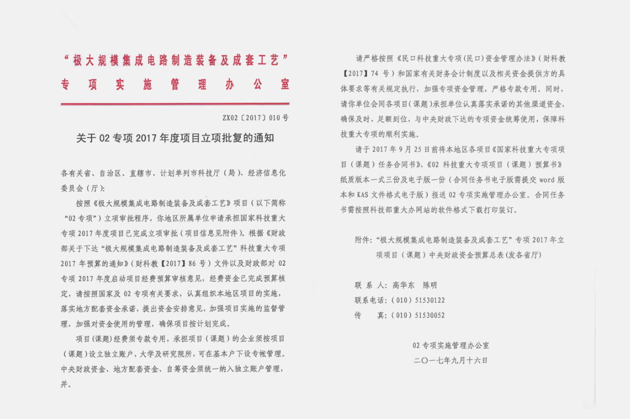 · 获得国家“02-专项”ArF光刻胶开发和产业化项目立项。